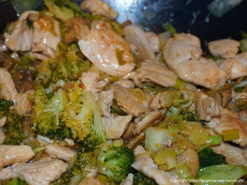 Kylling og grønt steges hver for sig for korrekt tekstur.